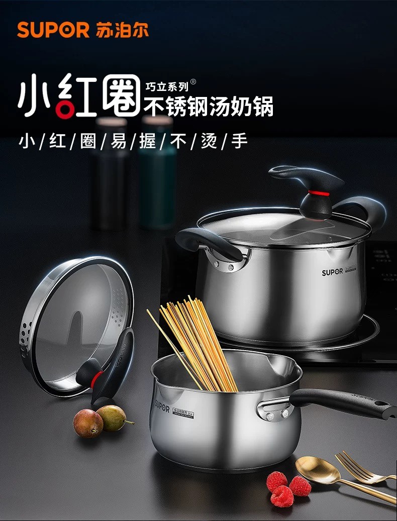 SUPOR 苏泊尔 小红圈不锈钢小奶锅 18CM